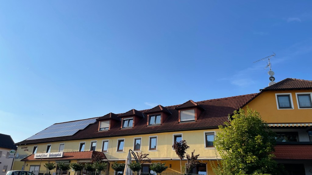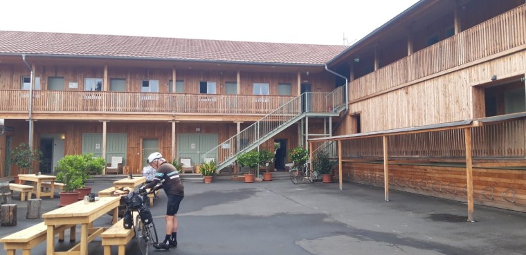 Die Lüfte sind mild, unsere Laune ist gut, währenddessen hängt der Wirt die Hotelwäsche im Vorgarten auf die Leine: Selbst ist der Mann!