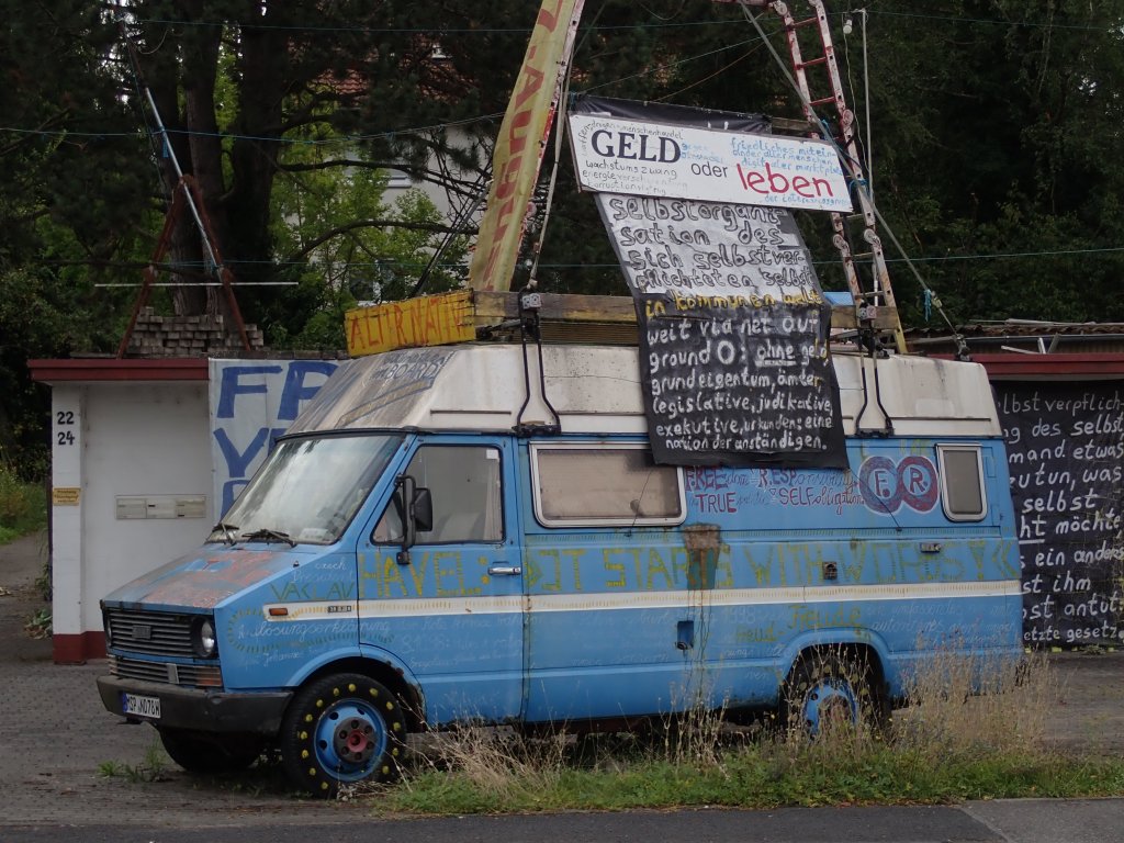 Wir fahren auf dem ersten Abschnitt eines gerade mit großem politischen Pomp eingeweihten Radschnellweges. Nach etwa einem Kilometer sind wir schon durch… War es das schon? Irgendwann sollen es 18 Kilometer Pendlerstrecke werden. Hoffentlich werden wir das noch erleben. Und hoffentlich dann mit notwendigen Verbesserungen. Denn wenn sich Fußgänger und die Kinder des nahgelegenen Spielplatzes auf die „Autobahn“ verirren, sind sie arg gefährdet.